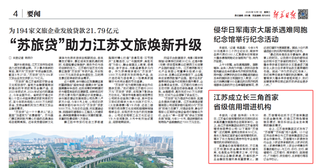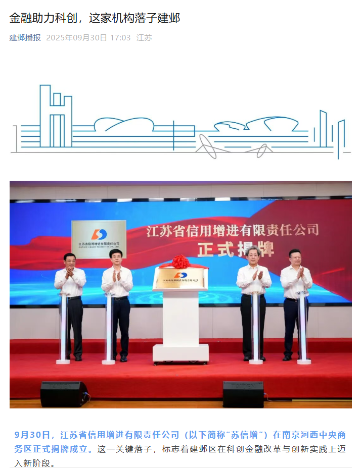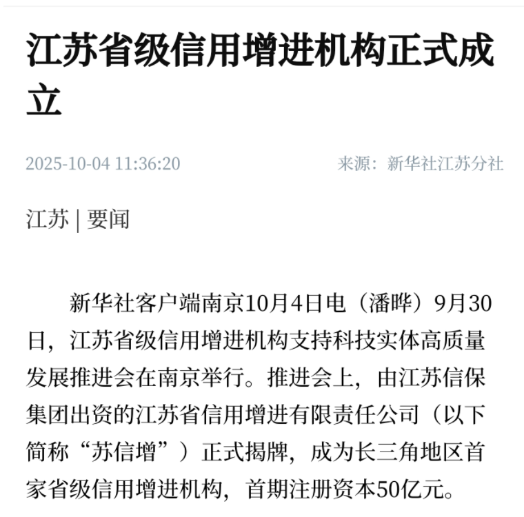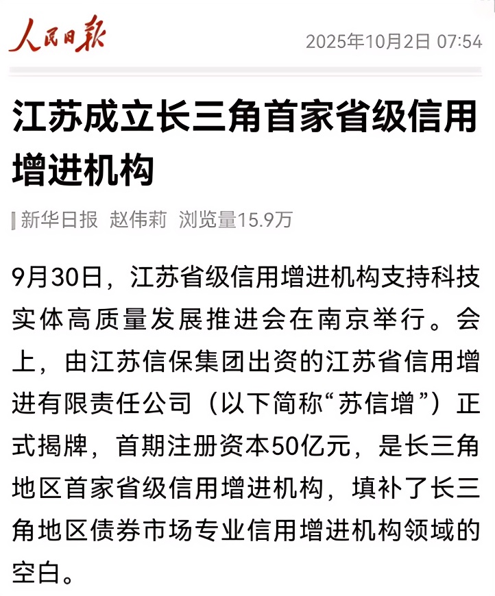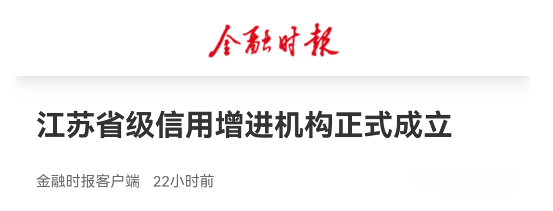 近日,江蘇省信用增進(jìn)有限責(zé)任公司正式成立。作為長三角地區(qū)首家省級信用增進(jìn)機(jī)構(gòu),填補(bǔ)了“長三角”地區(qū)債券市場專業(yè)信用增進(jìn)機(jī)構(gòu)領(lǐng)域的空白,獲得了人民日報、新華社、新華日報、金融時報等多家權(quán)威媒體集中報道。